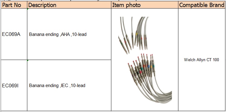 Prilagodljivi Welch Allyn CT 100 ekg vodiči, 10-vodi, povežite EKG kabel