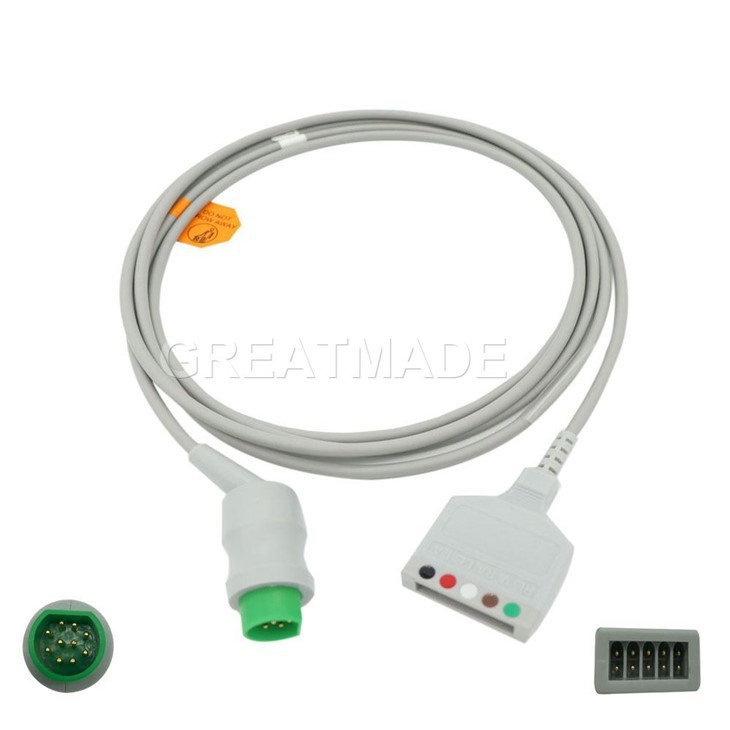Овај ЕКГ кабл са 5-одвода је дизајниран да преноси прецизне сигнале електрокардиограма са пацијентових електрода (преко жица) до Сиеменс Драгер монитора. Омогућава континуирано-праћење срчаног ритма високе прецизности у одељењима интензивне неге, одељењима хитне помоћи и периоперативним подешавањима која су неопходна за откривање аритмија, исхемије и других срчаних догађаја.